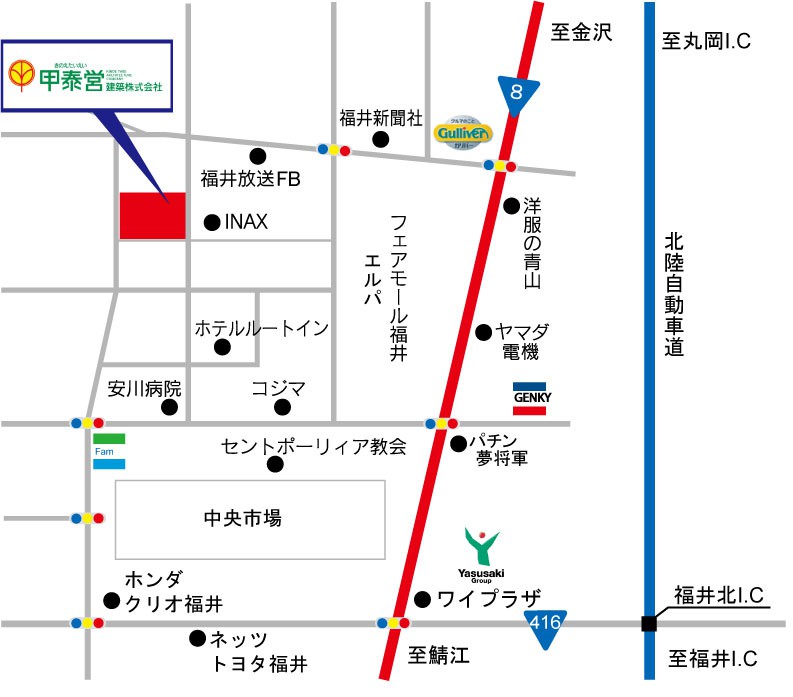 | 所在地 | 〒910-0837 福井県福井市高柳2丁目1301番地 レインボービル8F (Google mapを開く) |
